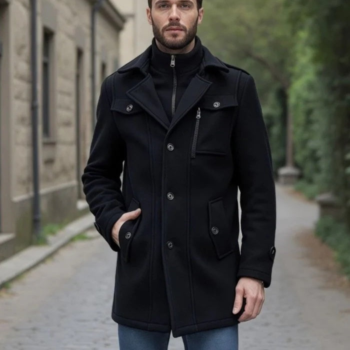 【Unique Design】Double necks, single-breasted, Notched collar and stand collar, Multi pockets, Single-breasted with detachable inner collar, Long sleeves, solid color. It is perfect for all kinds of men.